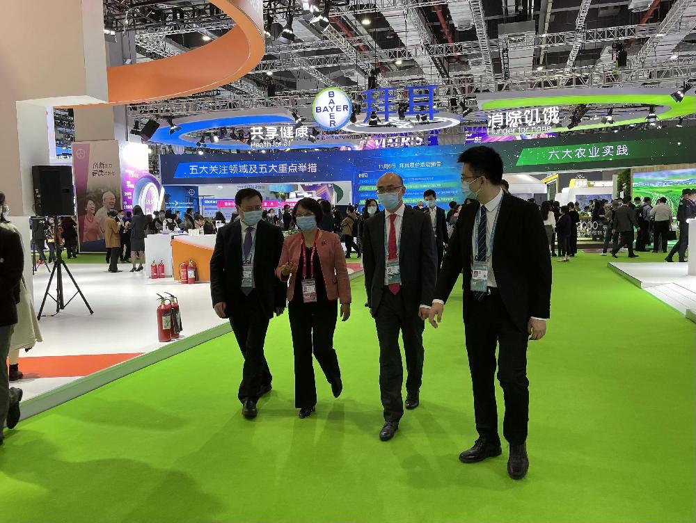 儀式結(jié)束后,嘉賓們參觀(guān)了連續(xù)第三年亮相進(jìn)博會(huì)的拜耳展臺(tái)。圍繞“共享健康、消除饑餓”的全新企業(yè)愿景,拜耳呈現(xiàn)覆蓋預(yù)防、診斷、緩解及治療于一體的醫(yī)療解決方案和創(chuàng)新、高效、環(huán)保的綜合農(nóng)業(yè)解決方案,亮點(diǎn)紛呈。