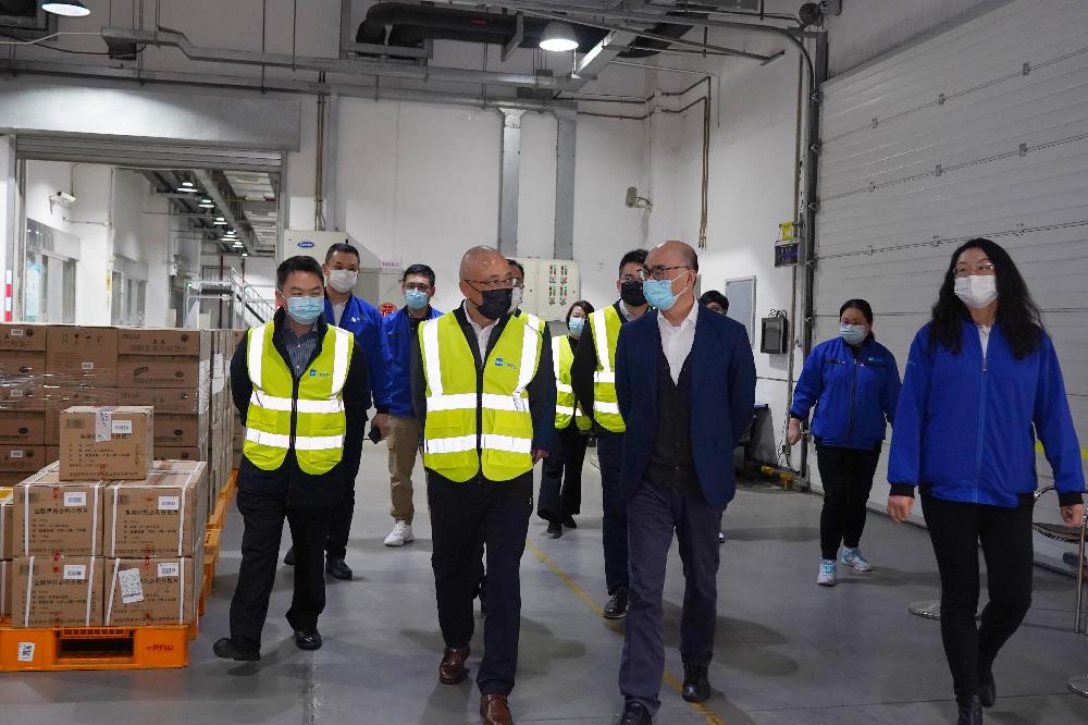 3月17日下午,上海醫(yī)藥執(zhí)行董事、總裁左敏,上海醫(yī)藥集團(tuán)黨委委員、上海醫(yī)藥執(zhí)行董事、副總裁、上藥控股總經(jīng)理李永忠,上海醫(yī)藥副總裁張耀華,上海醫(yī)藥集團(tuán)黨委委員、工會主席佘群一行前往上海醫(yī)藥物流中心有限公司綏德庫、豐饒庫,檢查備貨保供工作,并慰問上海醫(yī)藥物流的一線工作人員。