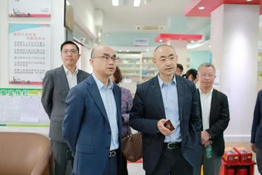 上海醫(yī)藥執(zhí)行董事、上藥控股總經理、上藥康德樂董事長李永忠(左三)參訪上藥康德樂大藥房廣州店