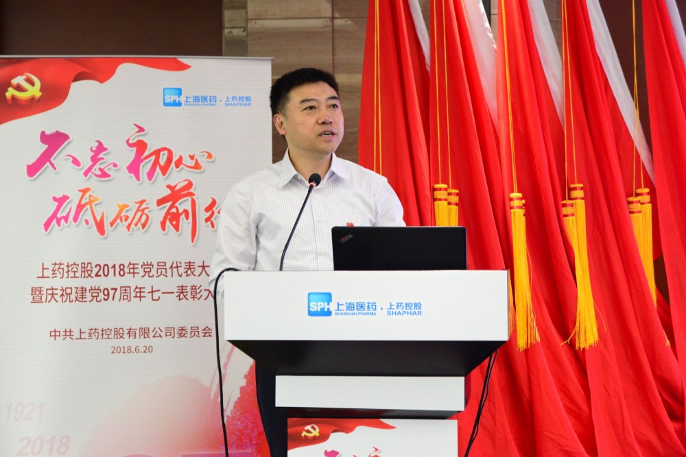 6月20日,上藥控股召開2018年黨員代表大會暨七一表彰大會。上海醫(yī)藥黨委副書記趙勇,上海醫(yī)藥執(zhí)行董事、上藥控股總經(jīng)理李永忠,上海醫(yī)藥紀(jì)委書記環(huán)建春,上藥控股黨委書記柳亞玲,上海醫(yī)藥黨群工作部部長、工會副主席佘群出席會議。上藥控股黨委委員、紀(jì)委委員、直屬黨組織書記、全體黨員代表、獲表彰先進(jìn)集體及優(yōu)秀個人等共150余人與會,上藥控股副總經(jīng)理唐鵬程主持會議。